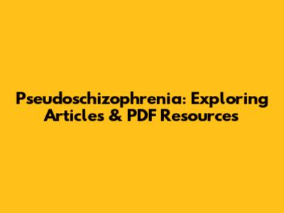 Pseudoschizophrenia: Exploring Articles & PDF Resources