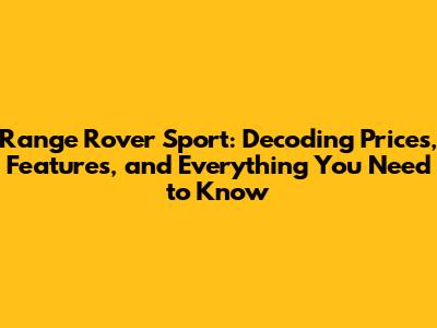 Hey there, gearheads! Ever found yourself drooling over a Range Rover Sport? This SUV is a statement, a blend of luxury, performance, and off-road capability that turns heads wherever it goes. But let's be real, before you start picturing yourself behind the wheel, the burning question is usually: "How much does this beauty cost?" Well, buckle up, because we're diving deep into the Range Rover Sport price landscape, exploring the features, and answering all your burning questions. Whether you're a seasoned luxury car aficionado or just starting your journey into the world of high-end SUVs, this guide is your one-stop shop.