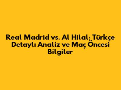 Hey futbol tutkunları! Real Madrid ve Al Hilal arasındaki heyecan verici maça hazır olun! Bu makalede, maç öncesi tüm detayları, oyuncu kadrolarını, taktik analizleri ve Türkçe yorumlarla bulacaksınız. Özellikle Türkiye'deki futbolseverler için hazırladığımız bu özel analiz, maç keyfinizi katlayacak. Hazırsanız, Real Madrid ile Al Hilal arasındaki dev mücadeleye yakından bakalım!