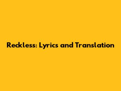 Reckless: Lyrics And Translation - Dive Into The Song!