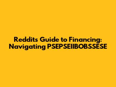 Reddit's Guide To Financing: Navigating PSEPSEIIBOBSSESE