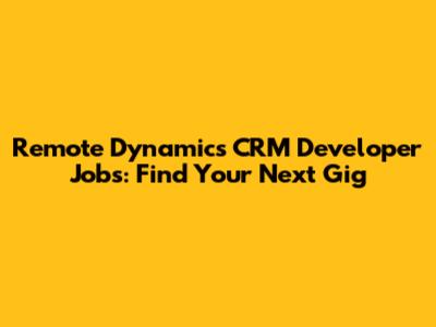 Remote Dynamics CRM Developer Jobs: Find Your Next Gig