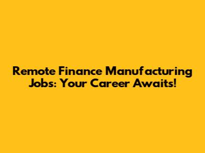 Remote Finance Manufacturing Jobs: Your Career Awaits!