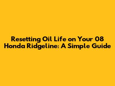 Resetting Oil Life On Your '08 Honda Ridgeline: A Simple Guide