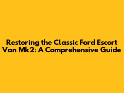 Restoring The Classic Ford Escort Van Mk2: A Comprehensive Guide