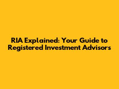 RIA Explained: Your Guide To Registered Investment Advisors