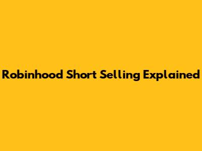 Robinhood Short Selling Explained