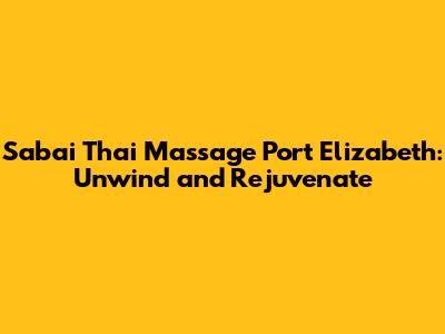 Hey guys! Are you in Port Elizabeth and feeling the need to de-stress and recharge? Look no further than Sabai Thai Massage! It's like a little slice of Thailand right here in PE, offering a range of incredible massage therapies designed to melt away your tension and leave you feeling utterly refreshed. Whether you're a local or just visiting, trust me, you won't want to miss out on this experience. Let's dive deep into what makes Sabai Thai Massage a must-visit destination for relaxation and wellness.
