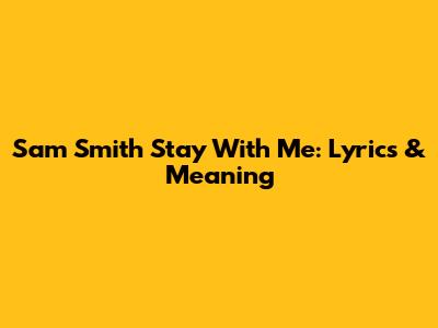 Sam Smith Stay With Me: Lyrics & Meaning