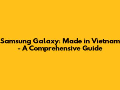 Samsung Galaxy: Made In Vietnam - A Comprehensive Guide