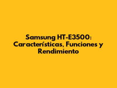 Samsung HT-E3500: Características, Funciones Y Rendimiento