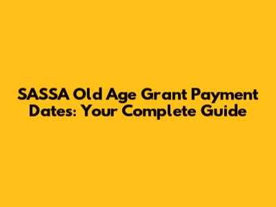 SASSA Old Age Grant Payment Dates: Your Complete Guide