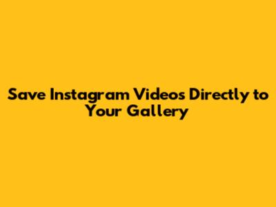 Save Instagram Videos Directly To Your Gallery
