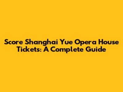 Score Shanghai Yue Opera House Tickets: A Complete Guide