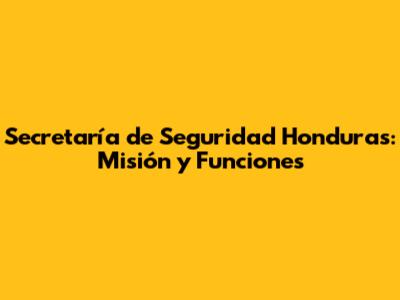 Secretaría De Seguridad Honduras: Misión Y Funciones