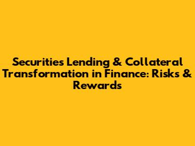 Securities Lending & Collateral Transformation In Finance: Risks & Rewards