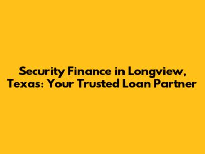 Security Finance: Your Trusted Loan Partner In Longview, TX