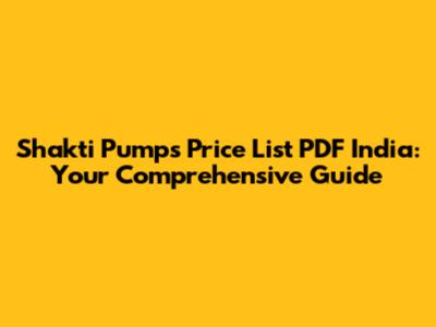 Shakti Pumps Price List PDF India: Your Guide