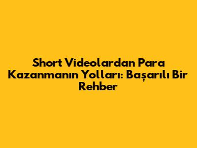 Short Videolardan Para Kazanmanın Yolları: Başarılı Bir Rehber