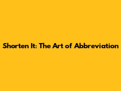 Shorten It: The Art Of Abbreviation