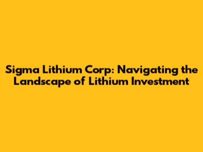 Sigma Lithium: Investing Insights & Financial Overview