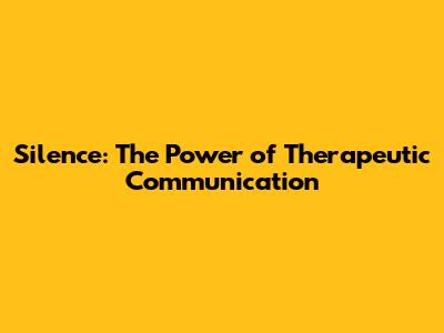 Silence: The Power Of Therapeutic Communication