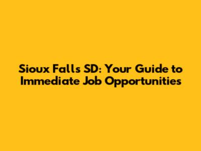 Sioux Falls SD: Your Guide To Immediate Job Opportunities