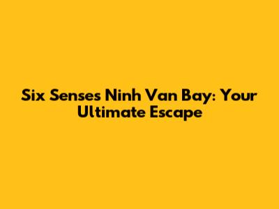 Six Senses Ninh Van Bay: Your Ultimate Escape
