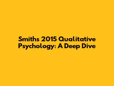 Smith's 2015 Qualitative Psychology: A Deep Dive