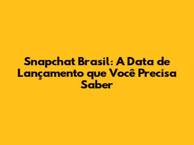 Snapchat Brasil: A Data De Lançamento Que Você Precisa Saber