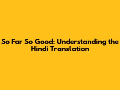 Exploring Hindi Translations of "So Far So Good"