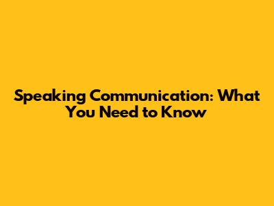 Speaking Communication: What You Need To Know