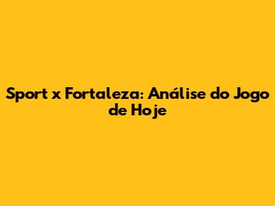 Sport X Fortaleza: Análise Do Jogo De Hoje