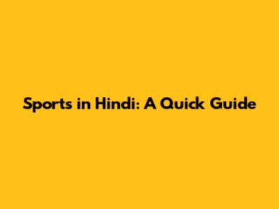 Sports In Hindi: A Quick Guide