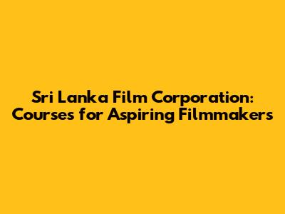 Sri Lanka Film Corporation: Courses For Aspiring Filmmakers
