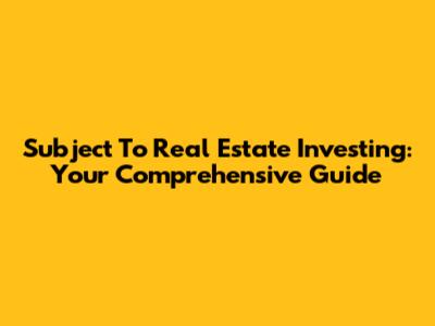 Subject To Real Estate Investing: Your Comprehensive Guide