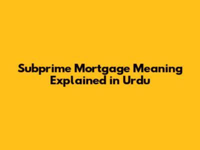Subprime Mortgage Meaning Explained In Urdu