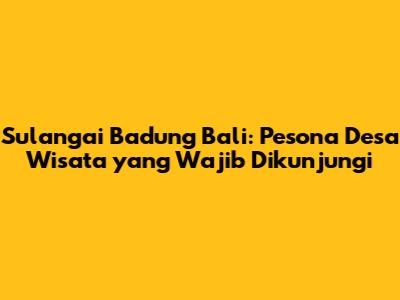 Sulangai Badung Bali adalah permata tersembunyi yang menawarkan pengalaman wisata yang tak terlupakan. Desa ini, yang terletak di kabupaten Badung, Bali, mempesona para pengunjung dengan keindahan alamnya, budaya yang kaya, dan keramahan penduduk lokal. Bagi kalian yang mencari pelarian dari keramaian kota dan ingin merasakan kehidupan desa yang autentik, Sulangai adalah pilihan yang sempurna. Dalam artikel ini, kita akan menjelajahi berbagai aspek menarik dari desa wisata Sulangai, mulai dari daya tarik wisata, aktivitas yang bisa dilakukan, hingga tips untuk merencanakan perjalanan kalian.