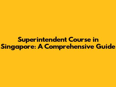 Superintendent Course In Singapore: A Comprehensive Guide