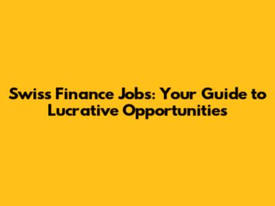 Swiss Finance Jobs: Your Guide To Lucrative Opportunities