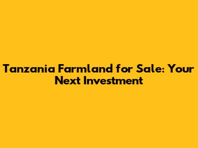 Tanzania Farmland For Sale: Your Next Investment