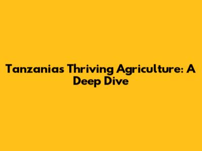 Tanzania's Thriving Agriculture: A Deep Dive