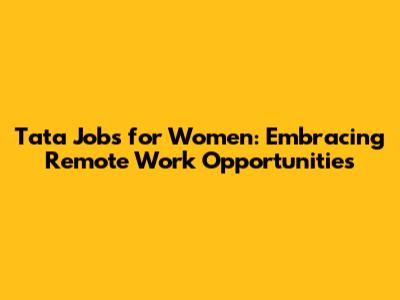 Tata Jobs For Women: Remote Work Opportunities
