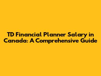 TD Financial Planner Salary In Canada: A Comprehensive Guide