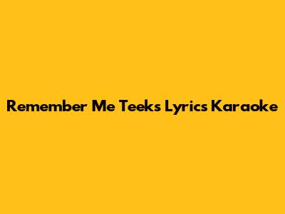 TEeks - Remember Me: Lyrics & Karaoke Guide