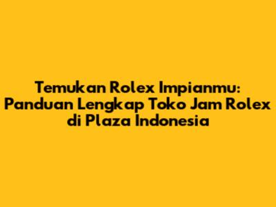 Guys, jika kamu pencinta jam tangan mewah dan sedang mencari toko jam Rolex di Plaza Indonesia, kamu berada di tempat yang tepat! Plaza Indonesia, sebagai salah satu pusat perbelanjaan paling bergengsi di Jakarta, menjadi rumah bagi berbagai butik mewah, termasuk toko yang menawarkan jam tangan Rolex. Artikel ini akan menjadi panduan lengkapmu untuk menemukan Rolex impianmu di Plaza Indonesia. Kita akan membahas segala hal, mulai dari lokasi toko, model-model Rolex yang tersedia, harga, hingga tips berbelanja yang cerdas. Jadi, siapkan dirimu untuk menyelami dunia kemewahan dan detail jam tangan Rolex!