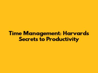Time Management: Harvard's Secrets To Productivity