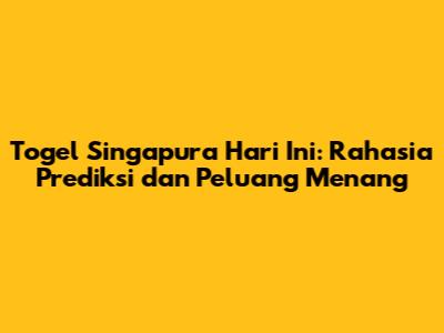 Togel Singapura Hari Ini: Prediksi & Peluang Menang