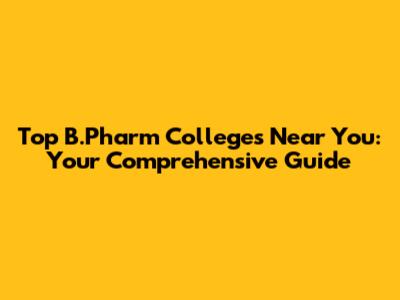 Top B.Pharm Colleges Near You: Your Comprehensive Guide