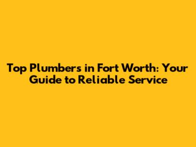 Top Plumbers In Fort Worth: Your Guide To Reliable Service